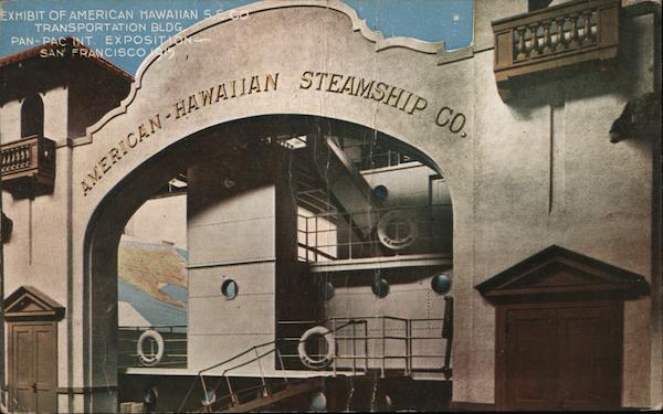 Front: EXHIBIT OF AMERICAN HAWAIIAN S CO TRANSPORTATION BLDG PAN- PAC NT EXPOSITIO 5, Back: ge Posh CARDINELL VINCENT CO. MFG. SAN FRANCISCO