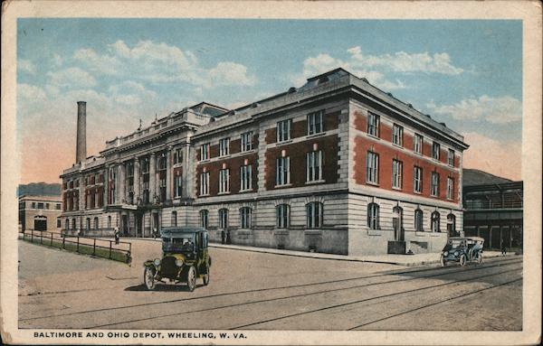 Front: BALTIMORE AND OHIO DEPOT, WHEELING, W. VA. Back: A-17207 NC WHE AUG 19 ser you soon. ra PM pes 1990 ht De Wilil. Fill CAN ART Jos Atembeka John And Ch. ha. de 178