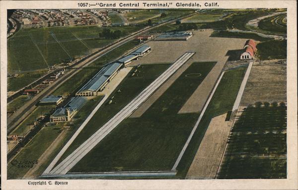 Front: 1057:-"Grand Central Terminal," Glendale, Calif. SPENCE 34049 Copyright C. Spence Back: Place the Stampe For United Stales and Island Possessions Cuba, Canada Pub, by M. Kashower Co., Los Angeles, California. CEMO