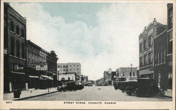 Front: Grill 2011 STREET SCENE, CHANUTE, KANSAS Back: POSCARD WALRAVEN BROTHERS, INC., DALLAS. TEXAS-