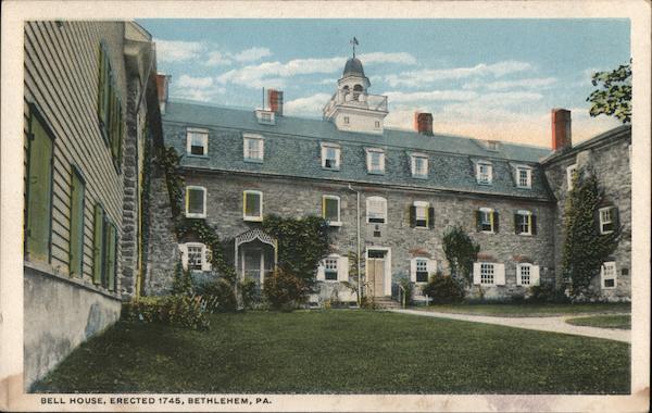 Front: BELL HOUSE, ERECTED 1745, BETHLEHEM, PA. Back: 22 PUBLISHED BY THE SABOLD-HERB CO., PHILADELPHIA, PA. C. T AMERICAN ART A-47548