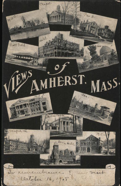 Front: Chapel . Pres. Ho m.a.c Pratt Field care VIEWS AMHERST MASS. us m.al Chapel ate m.a.4y Town Hall it 5. In rensembrance as ing visit rectober 16,1905 Back: DOMESTIC: FOREIGN: