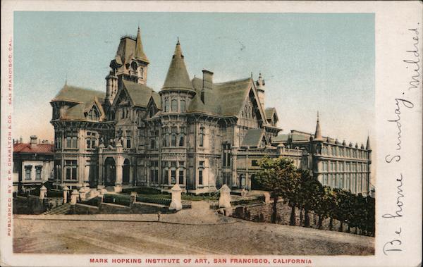 Front: PUBLISHED BY E.P. CHARLTON & CO. SAN FRANCISCO, CAL. MARK HOPKINS INSTITUTE OF ART, SAN FRANCISCO, CALIFORNIA Be home Sunday mildred. Back: SOCOON RE2 STATES OF 1704 FRANKLIN 1790 میر ا ت Miss Florence Carpenter, 1701- Ost Sacramento, Cal.