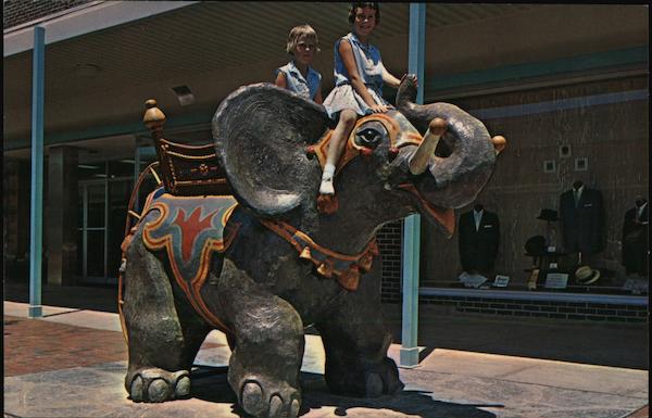 Kansas City's intown shopping center at Meyer Boulevard and The Paseo - another famous development by the J.C. Nichols Company. KC artist Jac Bowen created these unique and attractive figures from cement and fiberglass for the enjoyment of all visitors, both young and old. |