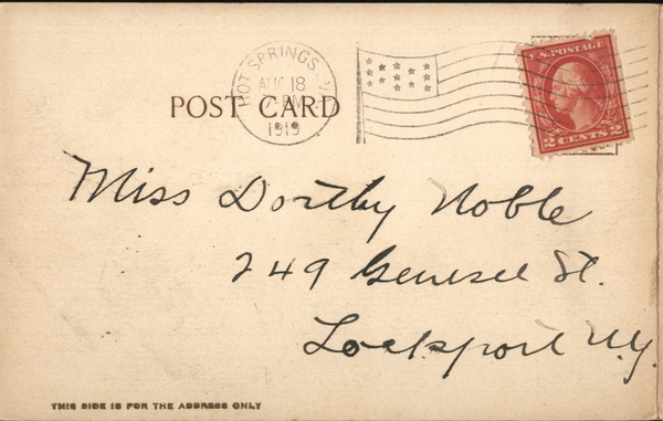 Front: The Homestead. Hot Springs, Va. F. 3 11 000 000. PUBL VIRG STORE सिय Back: Heels det, 5/5119 SPRINGS, & A!! 18 1919 與製 *** RCENTS 2 Miss Dorthy noble 249 Genesel se . Lockport ny