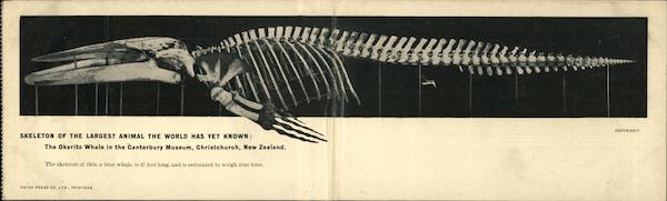 The skeletòn of this, a blue whale, is 87 feet long, and is estimated to weigh nine tons.
