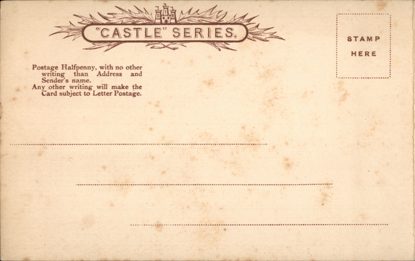 Front: MELYROOD FACACE c UNEH Ceutle Ser Back: "CASTLE" SERIES. writing than Address and Sender's name. Any other writing will make the Card subject to Letter Postage. Sent by.
