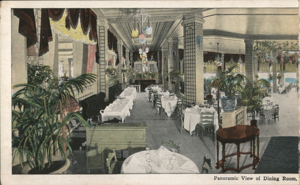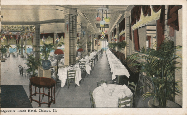 Front: Panoramic View of Dining Room, Edgewater Beach Hotel, Chicago, Ill. Back: 24043 SOUVENIR FOLDING CARD co E. C. KROPP CO., MILWAUKEE