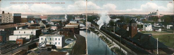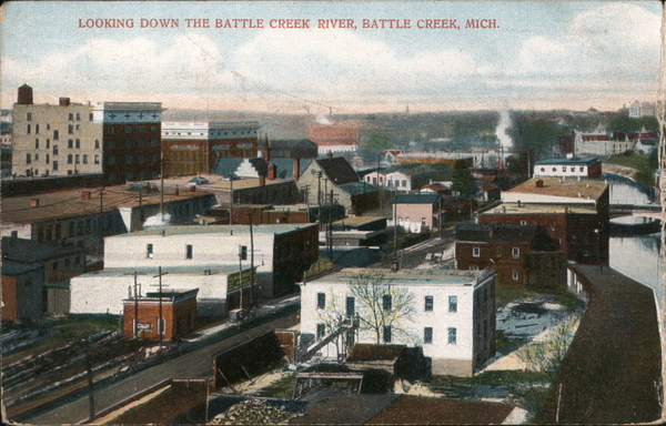 LOOKING DOWN THE BATTLE CREEK RIVER, BATTLE CREEK, MICH.