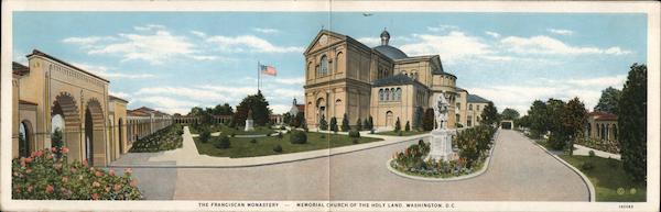 Front: THE FRANCISCAN WORATERY RORIAL CHURCH OF THE Y SAND WAHINGTON.B.C Back: LL Z POȘT CARD TMC HERMITAGE ART COMPANY CHICAGO ARTCHROM COPYRIGHT COMMISSARIAT OF THE HOLY LAND