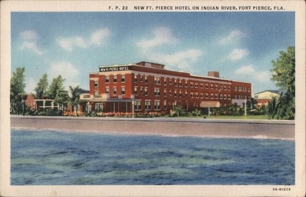 Front: F. P. 22 NEW FT. PIERCE HOTEL ON INDIAN RIVER, FORT PIERCE, FLA. NEW Fr PIERCE HOTEL 5A-H1259 Back: ASHEVILLE POST CARD CO., ASHEVILLE, N. C. “C.T.ART-COLORTONE” REG.U.S. PAT. OFF. To