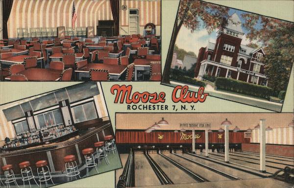 Front: Moose Club ROCHESTER 7, N. Y. PLEASE D6SERVE FOUL LUNE Modie Back: MOOSE CLUB 441 EAST AVE. ROCHESTER 7, N. Y. Banner Lodge of the Empire State 4B-H15 26 GENUINE CURTEICH-CHICAGO “C.T. ART.COLORTONE'' POST CARD (REG.U.S.PAT.OFF.)