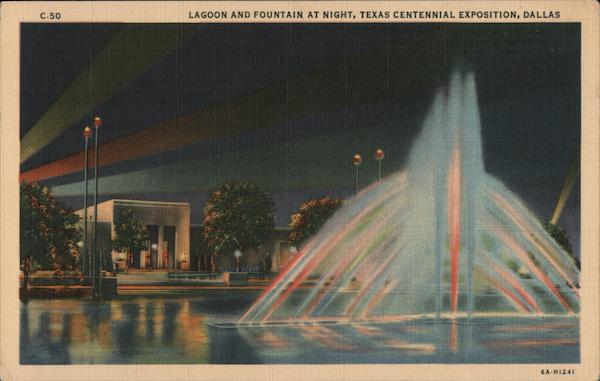 LAGOON AND FOUNTAIN AT NIGHT, TEXAS CENTENNIAL EXPOSITION, DALLAS