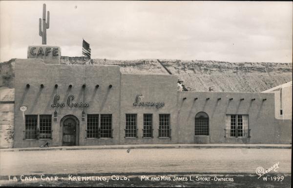 Front: CAFE L. Cese Leange AAA W-1999 MR.AND MRS. JAMES L. SHORT -OWNERS LA CASA CAFÉ KREMMLING, COLO, Back: 8/29/49 Jy) 1078