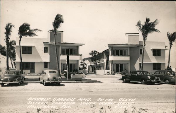 Front: 171 9203 BEVERLY GARDEAS RPTS SIXTEEN HUNDRE SOUTN OCERN- RIE ON THE OCERN NOLLE Back: مهر HOLLYWOOD FLA POST CAR E. ALL RIGHTS RESERVED --THEL L. COOK CO., MILWAUKEE