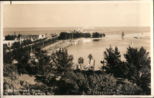 Front: Waterfront Park and Tampa Bay. SH Petersburg Fiorida. Back: ot. Pebeoben POST CARE (pin hole TNO A Z za Sky white Crop har to gut Watuty Parka Lampa 3 / 8 x 5 / tiffa404 این دوران امن Duration and Alb