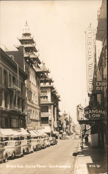 Front: CH CHOU ME TETHHO NEW GRANT SHANGHA LOW TRANSIENT ICOCKTAILS COCKTAILS CO. CHIAESE ART 000DS LAETSTER Grant Ave.China Town-San Franciseo R35 PV ROOMS Back: EM POST OR IR GT Pool FRAN NOV 12 430PM PONDENV AD co
