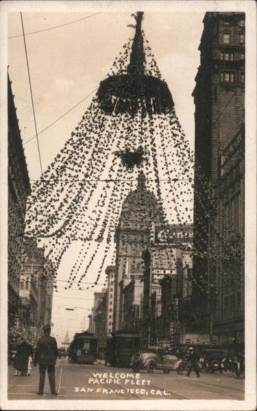 Front: ene PECTAL WN PRoNT PR BOOK PORTO WELCOME PACIFIC FLEET SAN FRANC ISCO, CAL. Back: 10 AA 2 o A 2d Z STAMP 2 NO A 2.0