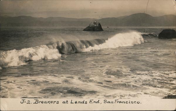 Front: J-2. Breakers at Lands End, San Francisco. Back: 28.50 JOSE POST CAVA AN GA 1 - M 1910 295 E.Sad Ferdino St. ह & Sunny th a word Sardo REV.S. G. Woon Bhanggory Mags. si طر