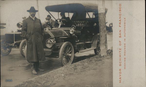 Front: MAYOR SCHMIT Z OF SAN FRANCISCO MAKING ROUNDS IN AUTOMOBILE Back: Nothing but address on this side. MADE BY PHOTO.CO. OF AM., CHICAGO