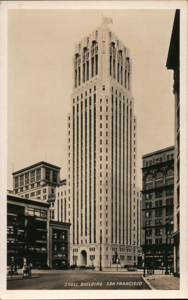 Front: FEE EEE EE E COMPANY COMPANY Pann COC CARLES PAN WA 1EAR LINE UNION SHELL BUILDING SAN FRANCISCO FIGGOTT PWATO-S हीस Back: POST GARDE SA