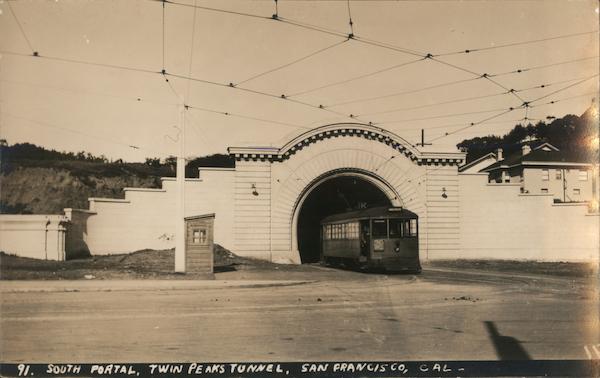 Front: IK IMGLESIDE PMMIT 1UPSUNM INGLESIDE 91. SOUTH PORTAL, TWIN PEAKS TUNNEL, SAN FRANCIS CO, CAL - Back: "Az o A 2 O ON > z STAMP = 0 N > > A 2 O