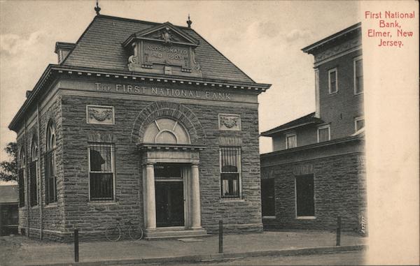 Front: First National Bank, Elmer, New Jersey. INCORPORATED A.D. 1903 H AARK THE FIRST NATIONAL BANK Back: 1 c 2 c E. W. Humphreys, Publ., Woodstown, N. J. No. 128. Made in Germany.