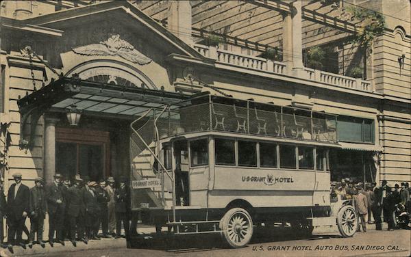 Front: USGRANTHOTEL USGRANT HOTEL 3851 U. S. GRANT HOTEL AUTO BUS, SAN DIEGO, CAL. Back: 13 EXPO AND CANADA, THE COMPLETION OF THE NO CANAL DIEGO
