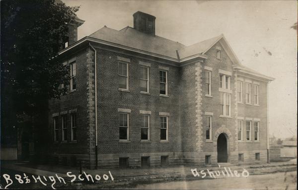 Front: B Bš4igh School ७११णीदि Back: SHVID POST CARD208 37 UNITED STATES OF SAMERICAIS 6 AM 15 FRANKLIN 1290 10 ONE CRENT Miss Ruth Meyers Strutsville ohio Jeannette