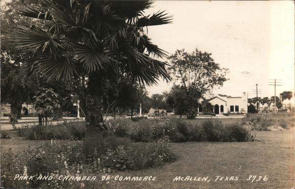 Front: PARK ÀND CHAMBER DE COMMERCE MCALLEN, TEXAS 3736 Back: VEDS or 22 27-PM TEXAS es FRANKLIN OR 1937 POST LENARD Get 22-19 Landed te-day all is well no lamely Boeide عملا بار /3 /9 be 4065 Concordia St. Louis Love