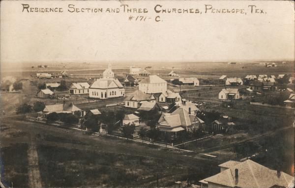 RESIDENCE SECTION AND THREE CHURCHES, PENELOPE, TEX.