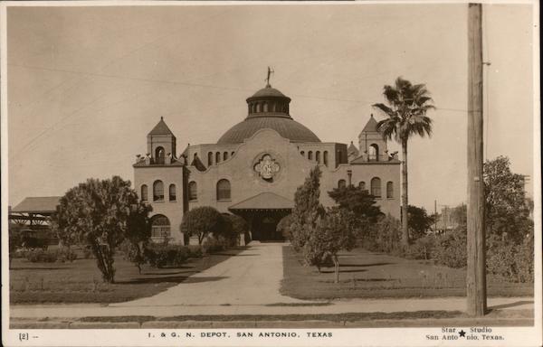Front: CREAT TEXAD 4i Studio nio, Texas. Star San Anto I. & G. N. DEPOT, SAN ANTONIO, TEXAS (2] -- HORA Back: AA zo .- NO NO . А 2 оу