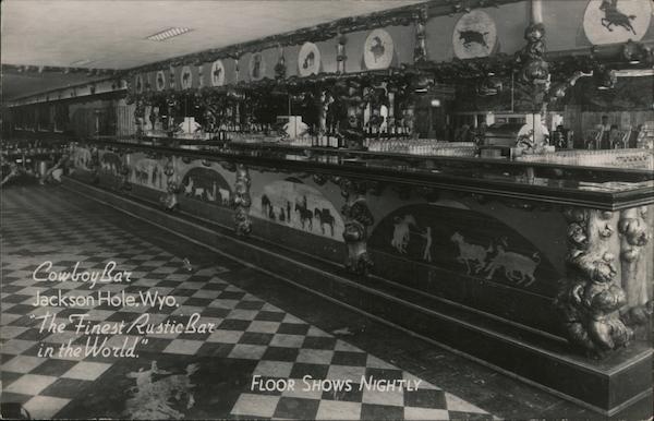 Front: CowboyBar Jackson Hole.Wyo. The Finest Rusticbar in the World." FLOOR SHOWS NIGHTLY Back: G. M. Scott Eu Sons Idaho Falls, Idaho is GENUINE PHOTOGRAPH