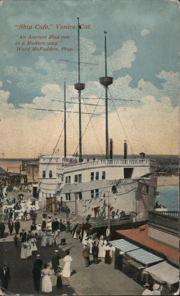Front: "Ship Cafe," Venice, Cal. 64 An Ancient Ship run in a Modern way. Ward McFadden, Prop. CABRLO Back: On the Line Los Angeles Pacific. Domestic and 9837-PUB. BY JACK PARSONS, LOS ANGELES, CAL. be Gas 19 11 On the road of a Thousand Wonders. 32