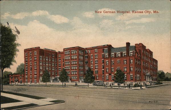 Front: New German Hospital, Kansas City, Mo. M21721 Back: 2 - VER Pust Can LEIPZIG BERLIN NEW YORK. PUB. BY THE SOUTH WEST News COMPANY, KANSAS CITY, Mo.