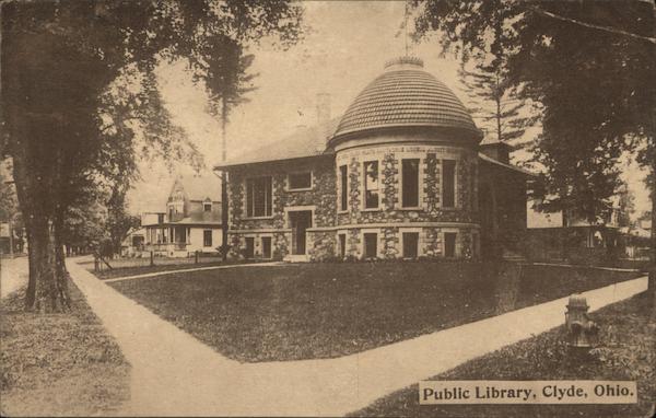 Front: Public Library, Clyde, Ohio. Back: U.S.POD STAGE OR MA IN Hello, just Miss Florence Auburn Post Card Manufacturing Co., Auburn, Ind. more to add to the collection ay G H It. Harley Sherman, n.y.