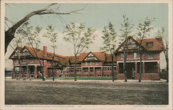 Front: 1969. THE BISONTE, NEW SANTA FE HOTEL, HUTCHINSON, KANSAS. COPYRIGHT, 1908, BY FRED HARVEY. Back: AND CANADA. ONE CENT.. FOREIGN. TWO MADE ONLY BY DETROIT PUBLISHING CO. "PHOSTINT" CARD. THIS SPACE MAY BE USED FOR MESSAGE.