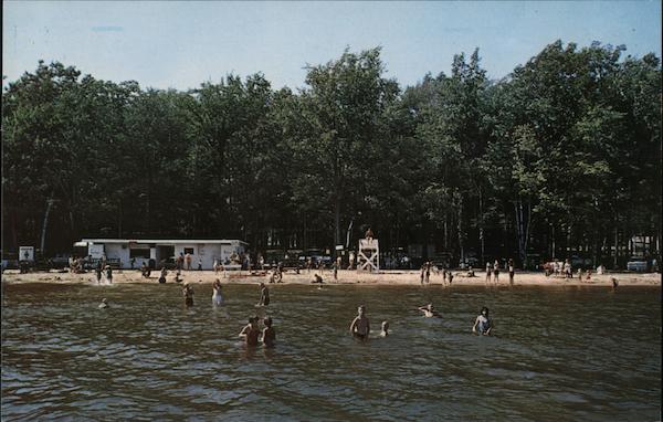This sandy beach on Lake Cadillac is popular with
