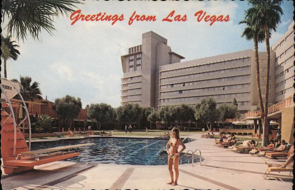 Front: Greetings from Las Vegas VIERA Back: RIVIERA HOTEL "On the Strip" Las Vegas, Nevada .......... P302953 Mrit Me, fames Dist. by Las Vegas News Agency, Las Vegas, Nevada Harkleman COLOURPICTURE BOSTON, MASS. 02130