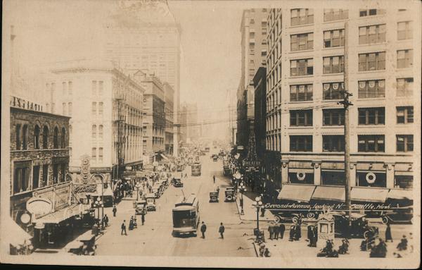 Front: SEATTLE THEATRE CSHES INSIDE E CUP NMOHHN 170 Second-Avenua, looking NSuttle, thrah. LI L1 41 1) Back: SCENIC PHOTO PUBLISHING CO, SEATTLE. WASH. . !. CORROSPONDENCE ADDESS