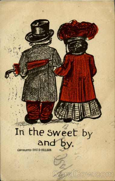 Front: In the sweet by and by. COPYRIGHTED 1907 D HILLSON Back: FRANC SCO.CA 1901 Drop Miss Lilos Rapp a line Hope you are all Well 3524 Any sti Sari dirancisco Series 3700 POPULAR COMICS, 49 Subjects California