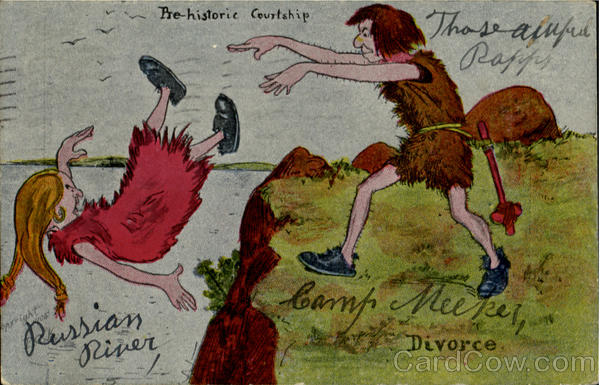 Front: Russian River Pre-historic Courtship Those ainfre Raffs Camp Meeker, Divorce Back: UNITED STATES OF PCK RANCISCO Post Care. AM 1907 FRANKLIN 1790 Miss Lilas Rapp. Camp Meeke. Sonoma lev California CAMP CA THIS SIDE FOR THE ADDRESS