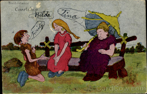 Front: Trehistoric Courtship Hilda Tina Frity Back: PCK Post Cate 1907 1706 FIN 1790 CAM Miss Liles Paſſ Camp Meikes Sonoma Co. California THIS SIDE FOR THE ADDRESS