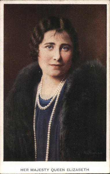 Front: Aany Whaightson London HER MAJESTY QUEEN ELIZABETH Back: VALENTINE'S THROUGHOUT 37-1 WORLD GT. BRITAIN VALENTINE & SONS, LTD., DUNDEE AND LONDON COPYRIGHT. 3607
