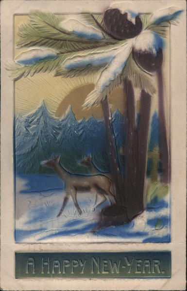 Front: A HAPPY NEW-YEAR Back: Postits Dear sister Happy New year to all ta Allice Mrs. W. F. Medlin, 570% E. 14th St Oakland I lealy
