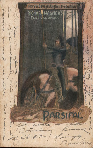 Front: Henry WSavages English Production RICHAR WAGNERS FESTINAL OPERA RARSIFAL fr enta Ca evaca Vines Tlisnaste hン in Karny rand me athen Back: OTAVIORICA S MAP 20 430 PM ASHINGTON 1799 12 1905 Q149) ARD Win Tonnate Canaler al De u.