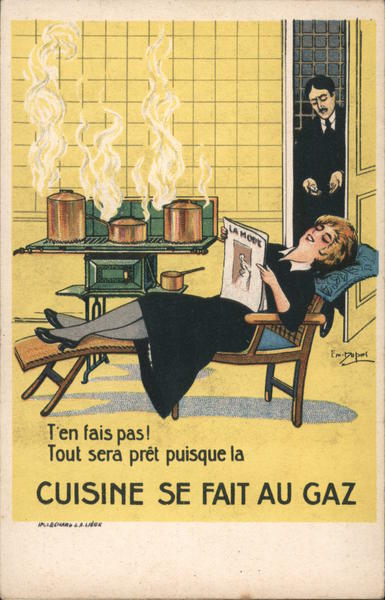 Front: LA MODE Em Ten fais pas! Tout sera prêt puisque la CUISINE SE FAIT AU GAZ IMABEHARD S.A.LIÉGE Back: 2:18_1499 JARO