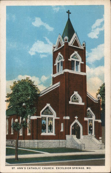 Front: 金rA ST. ANN'S CATHOLIC CHURCH, EXCELSIOR SPRINGS, MO. Ite Back: 3- R-76462 AND ISLAND POSSESSIONS, CUBA, CANADA AND MEXICO (0) MERICAN ART Z- PETRAGE 18