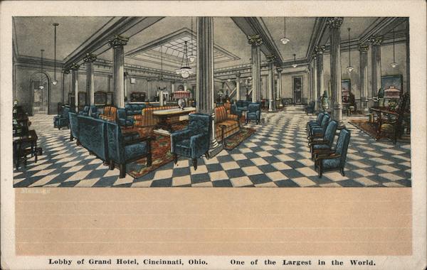 Front: Lobby of Grand Hotel, Cincinnati, Ohio. One of the Largest in the World. Back: 25244N GRAND HOTEL Cincinnati, O. Со ... E. c KROPP CO., MILWAUKEE