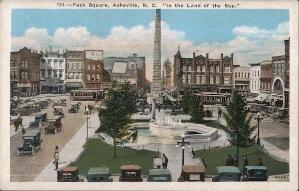 Front: 151:-Pack Square, Asheville, N. C. “In the Land of the Sky." SMITHS 2226/ Back: Pub. by Asheville Post Card Co., Asheville, N. C. Cow IN OFTE BLUE HEART IN THE MERIDGE M M